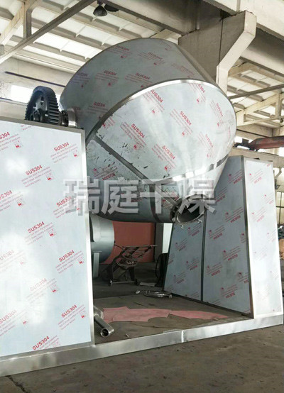 ◎在動力驅(qū)動下,罐體作緩慢旋轉(zhuǎn),罐內(nèi)物料不斷地混合,從而達到強化干燥的目的。